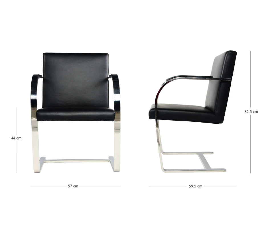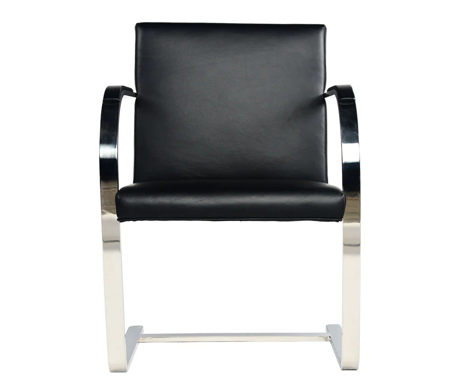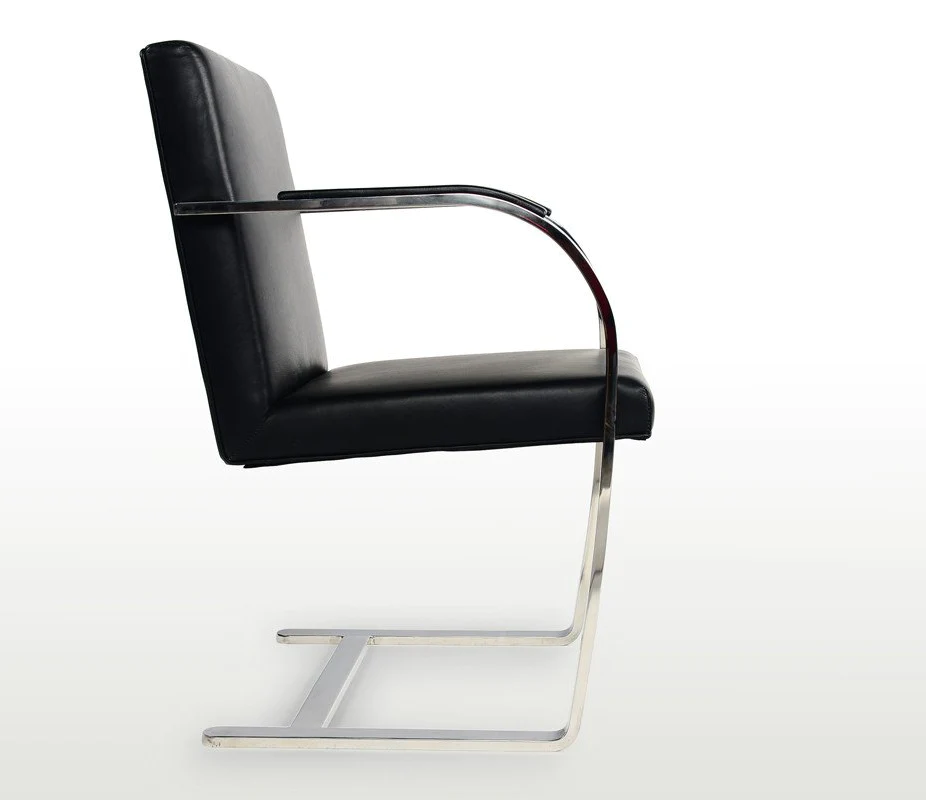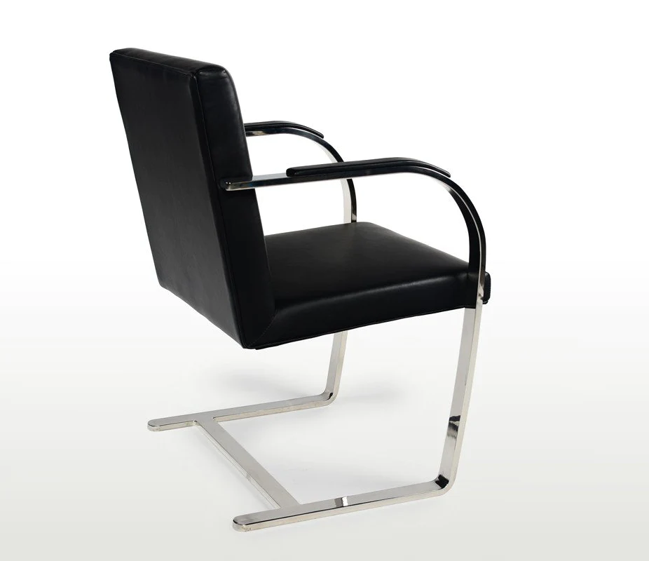 The Brno Style Dining Chair offers the comfort of an armchair without the old-line stuffiness or bulk of upholstery. Weighty stainless steel lends the chair its strength and boasts seamless joints and a hidden wooden frame.