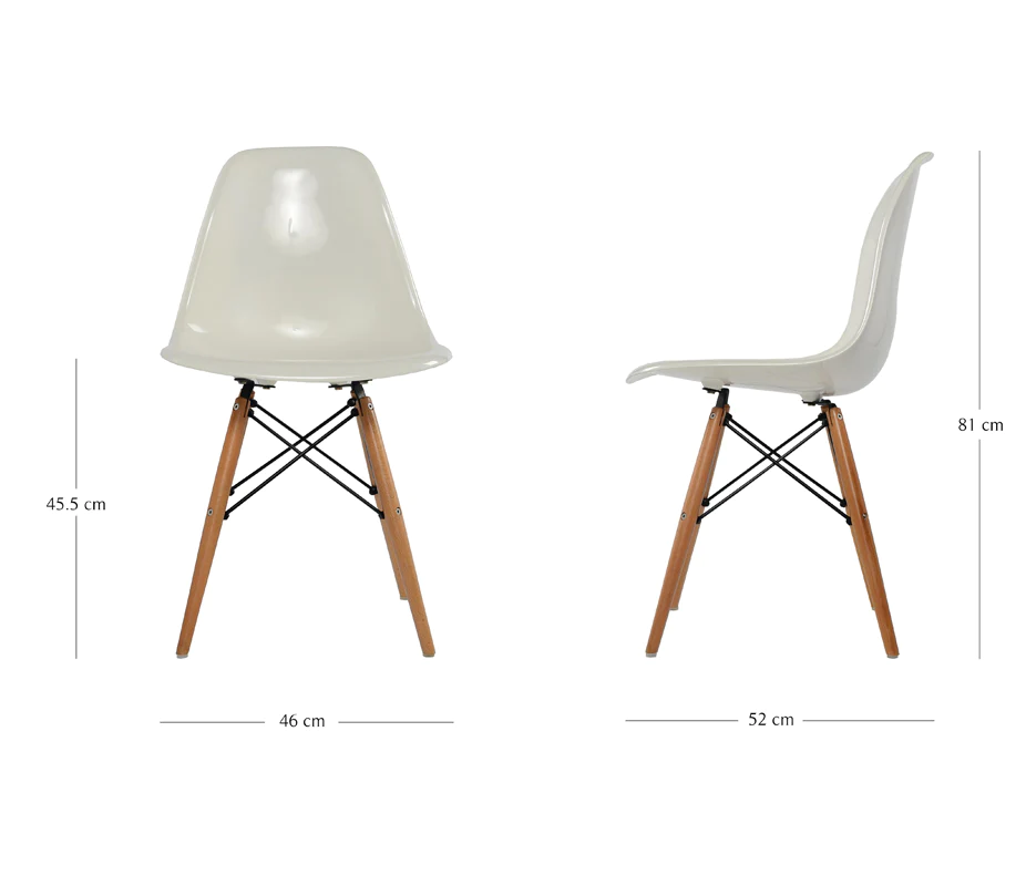 Our Eames Molded Fiberglass Dowel Base Side Style Chair (DFSW) is inspired by Charles and Ray Eames’s work of art, with no association with the original producers.