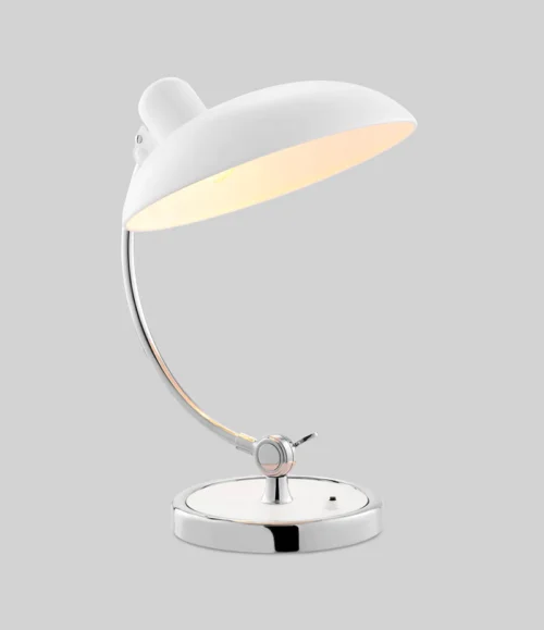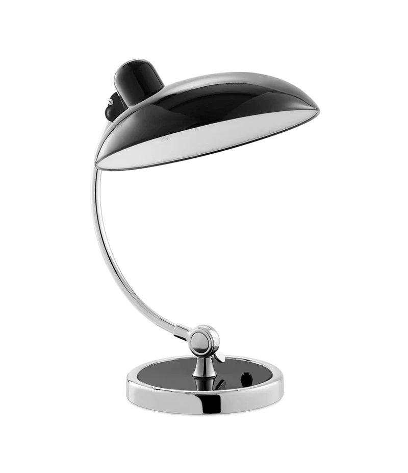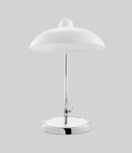 German silversmith Christian Dell helped shape the Bauhaus approach to industrial lighting and designed the world famous Kaiser Idell Table Lamp in 1931. The flagship of the Kaiser Idell Lamps that was often used on detectives’ desks on TV since the 1960 and thus often called the Detective’s Lamp. The series is based on a world-patented swivel joint and the characteristic dome embossed with” ORIGINAL KAISER-idell”. The term “idell” is a reference to the word idea and his last name Dell. “Kaiser” is a reference to the original manufacturer- KAISER idell.