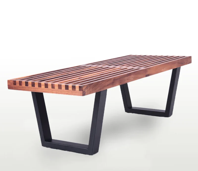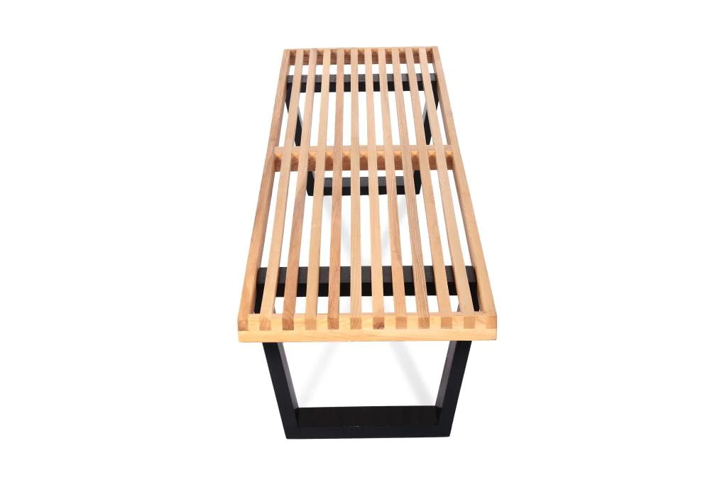The Nelson Style Bench exihibits natural grain variations, constructed of solid wood, slight differences from slat to slat should be expected.