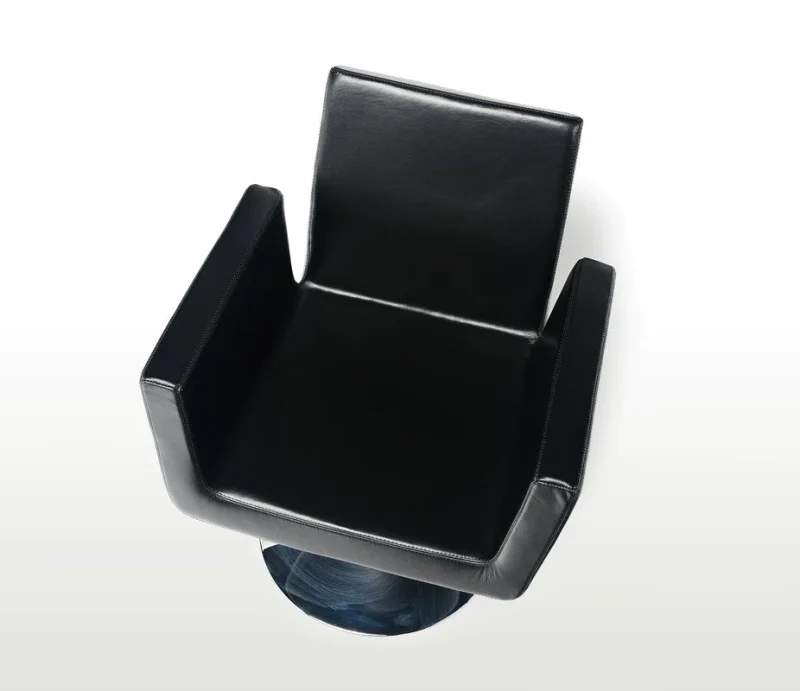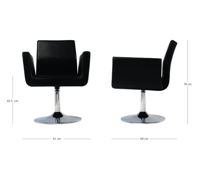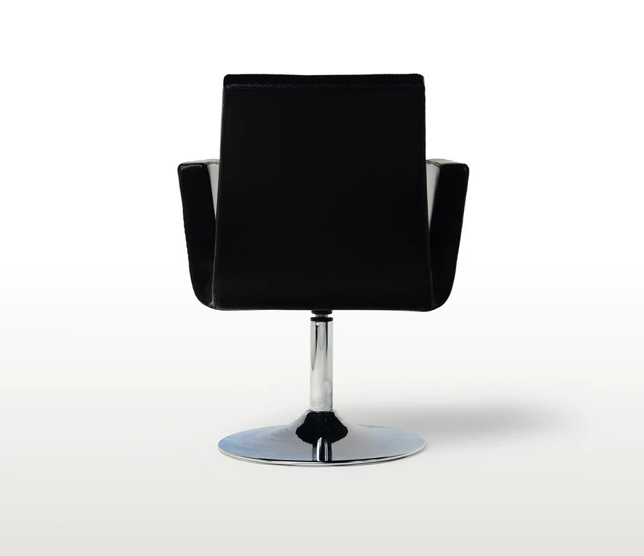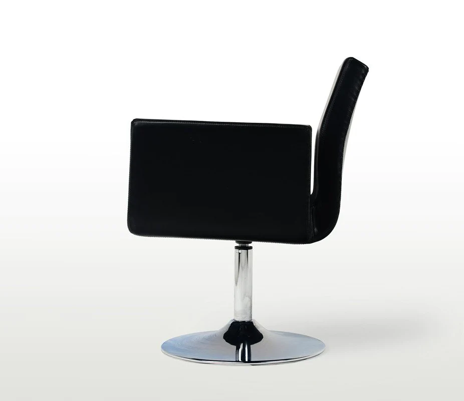A centrally positioned stainless steel base and upholstery of your choice completes the formal yet elegant look the Ola P Style swivel chair exudes.