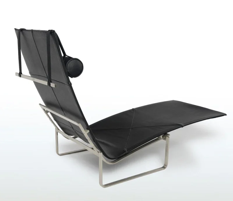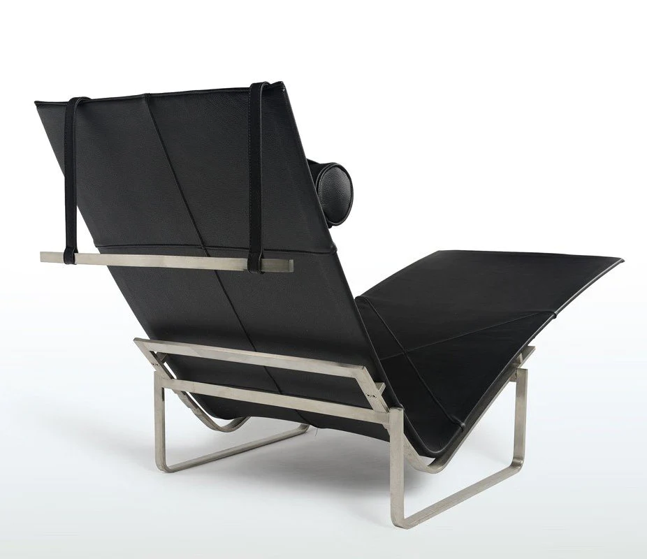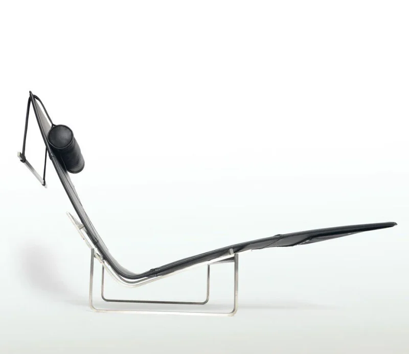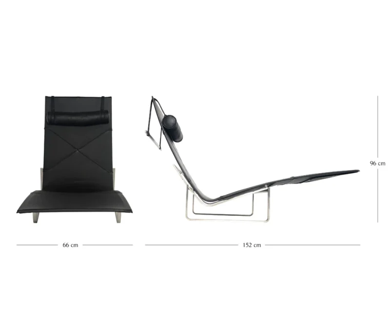 Simple elegance, a typical Kjærholm design – with the combination of steel and mid-thick leather with an adjustable headrest – in an exclusive and minimalist design.