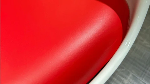 While the elegant Tulip armchair looks as if it is made of all one material, the sculptural seat is actually supported on an aluminum stem with reinforced fiberglass.