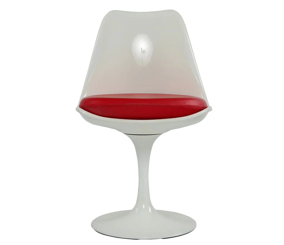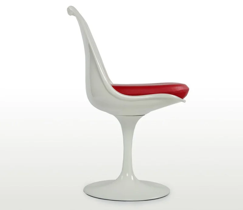 This one-legged chair was meant to alleviate one of Saarinen’s great concerns: clutter. Eero Saarinen vowed to eliminate the “slum of legs” found under chairs and tables with four legs.