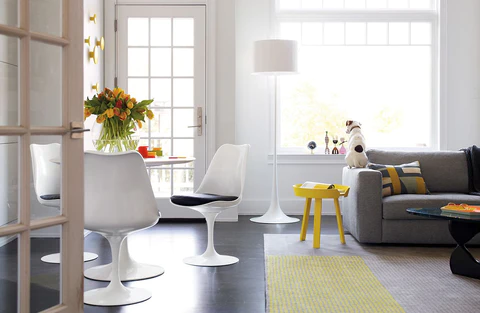 In his purist approach to design, Eero Saarinen sought out the essential idea and reduced it to the most effective structural solution. He designed the chair in terms of its setting, rather than a particular shape.