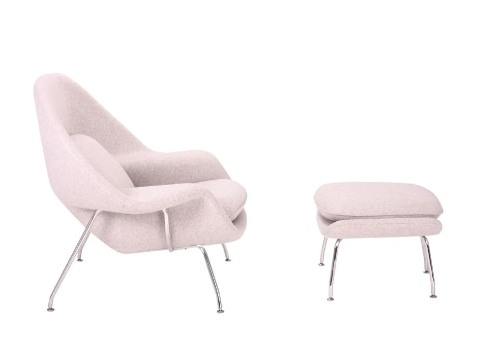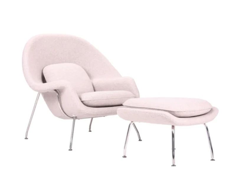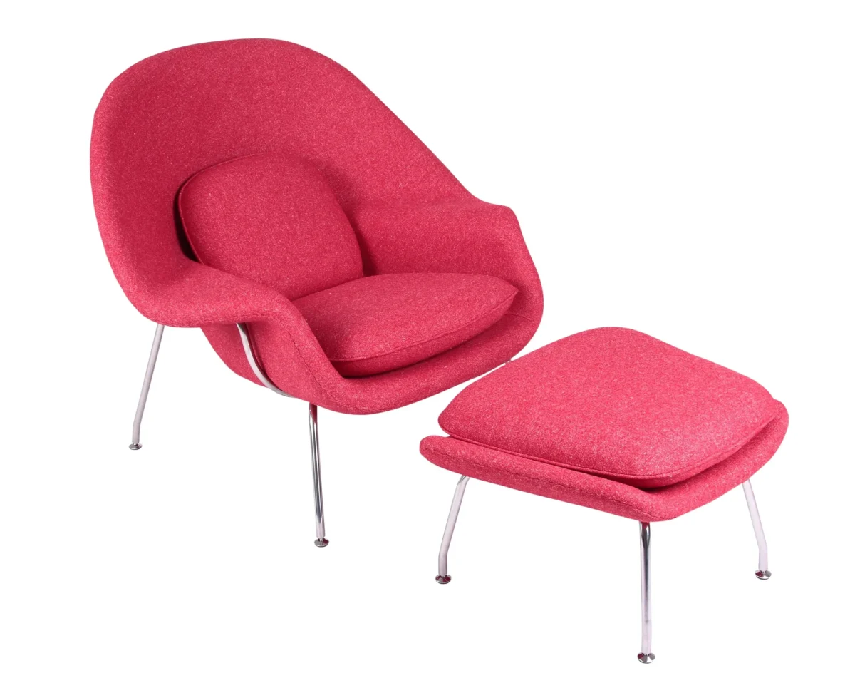 Eero Saarinen designed the groundbreaking Womb Chair at Florence Knoll’s request for “a chair that was like a basket full of pillows, something I could really curl up in.”